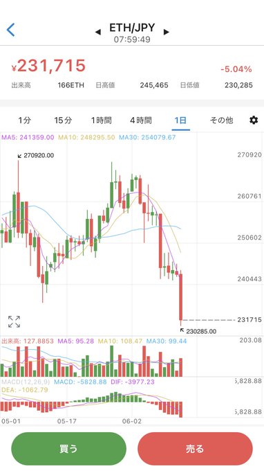 おはようございます。 今朝は、とにかくETH買い足し でも、下げ止まらん。 https://t.co