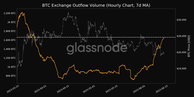 📈 #Bitcoin $BTC Exchange Outflow Volume (7d MA) just