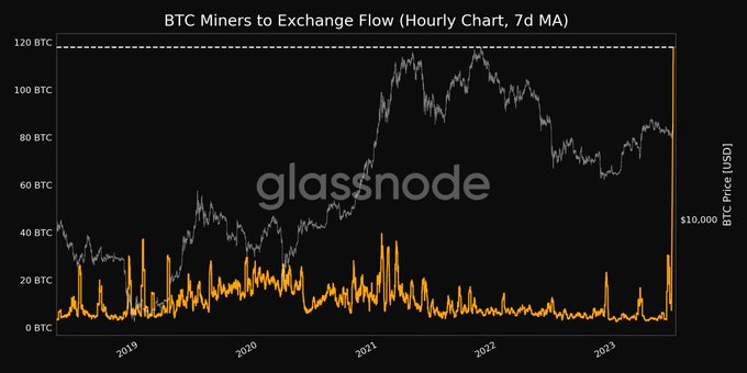 📈 #Bitcoin $BTC Miners to Exchange Flow (7d MA) just
