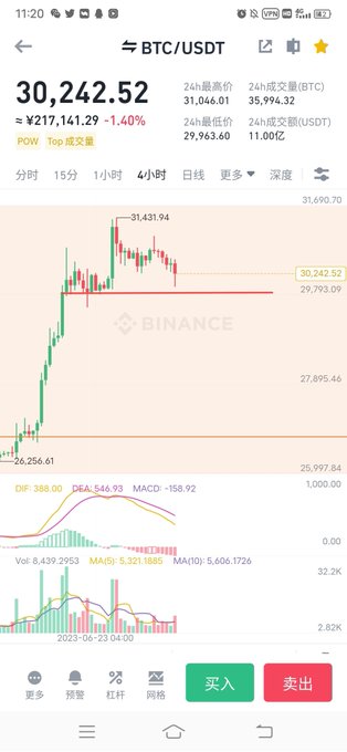 大饼姨太四小时走出顶背离后进入调整阶段,自大饼新高顶背离后为了避免回调风险,有一段没参与。 昨天贝莱德喊单defi造起来的局部行情让姨太短时间走强了一下,所以参与了一下山寨,选的标不太给力。最终是大饼姨太都没给出新高二次顶背离再跑的机会就下来了。目前大饼姨太在图中的支撑位29800-1860。