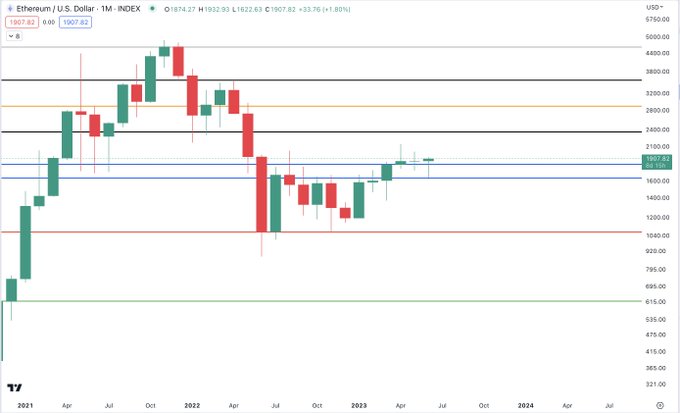 #btc 22年足高値48175$ 今月で確定する半年足は陽線アウトサイド完成間近 年足陽線アウトサイド決めてくるのも可能性高い
