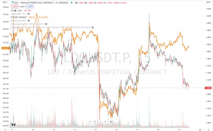 個人看法 這段時間還是不要去做多山寨幣 6/16-17 ETH拉了一波百點漲幅 其餘山寨幣也跟著漲 但當ETH正常回調到1720-40區間 山寨幣卻跌得不成人形 (po文此時,APE直接創新低了) 感覺就像是有主力刻意拉高BTC/ETH 來出貨山寨幣的感覺 剛好前兩天在忙 也沒時間觀察山寨幣 錯過空的機會…