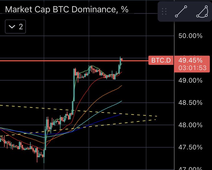 #BTC Dominance 👀 #alts 👀 https://t.co/jhncI0uLxY