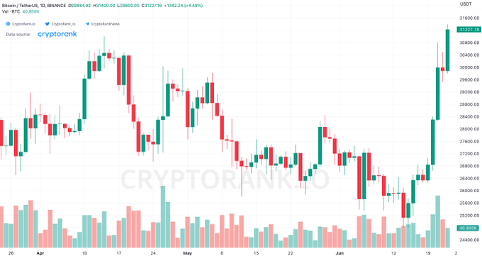 📈 #Bitcoin Price Broke $31,000 Over the past 24 hours