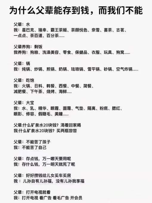 虽然是个段子,但是讲的似乎有点道理!【为什么父辈能存到钱,而我们不能】 一觉醒来, #BTC 又跌了!尼玛,今天又是亏钱的一天!今天,亏钱的报个到!