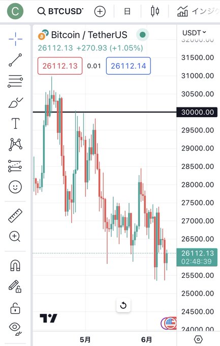 おはようございます☀️ #BTC 安値圏推移も下値抵抗見せる 25900ドル付近 #CAW #BABYDOGE
