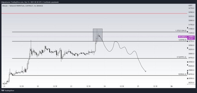 BTC 30 dk. 30750 altında 30 dklık kapanışlar sonrası