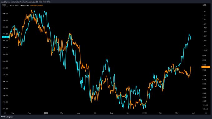 🟠 Bitcoin market cap + ETH market cap 🔵 Nasdaq-100