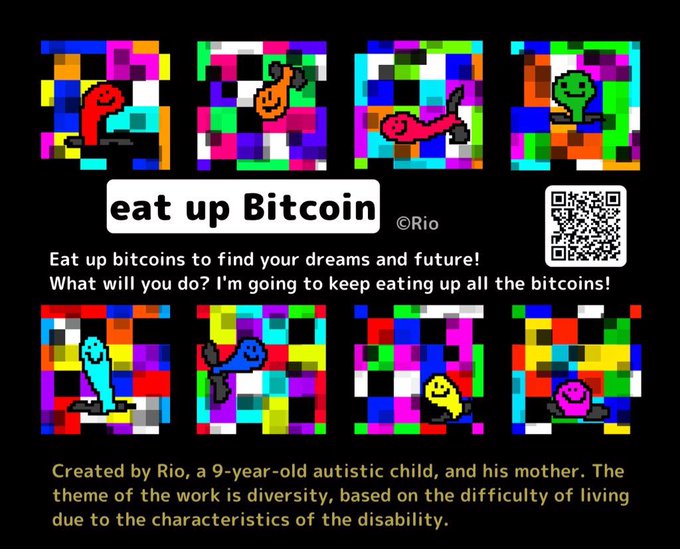 9歳の自閉症児Rioと描く 多様性がテーマのアートです💗 eat up Bitcoin🐛 ▶︎ https://t