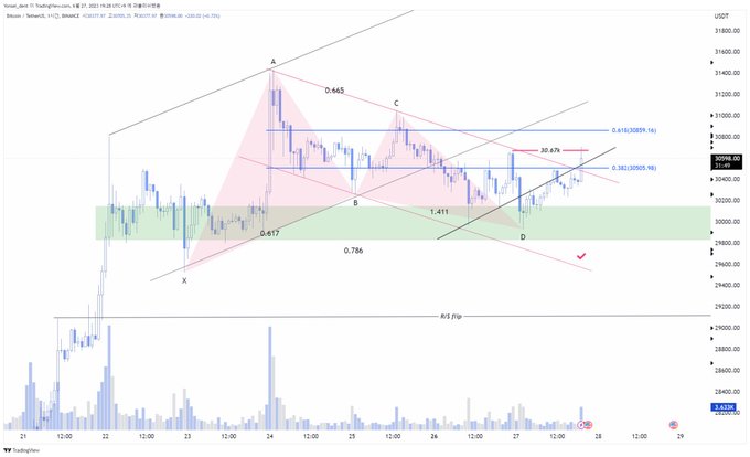 #BTC 1. 상승 추세선 및 하락 채널의 돌파 2. 거래량이 동반되었지만, 다소 아쉬운