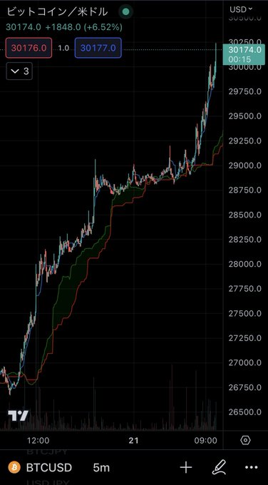 BTC3万ドルも突破し、アゲアゲが止まらない。 https://t.co/NbKOqT9tma