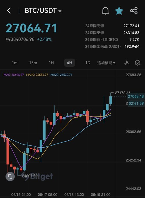 ビットコイン$27,000超え📈 #BTC #仮想通貨 https://t.co/ufNZ99T
