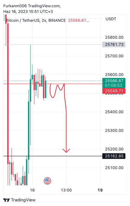 #BTC 25549 altında 2 saatlik mum kapanışı gelir ise