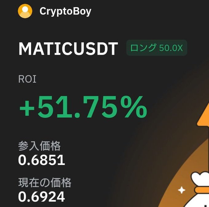 #BTC 初回建値$25038 #LTC 初回建値$84.9 新規 #MATIC 建値0.6851 いいねリツイートいつありがとうございます‼️ 私の現在のポジションです😎 ツイートモチベーションは皆様の反応です‼️ 多ければ頻度も高くなります‼️ 今後とも宜しくお願いたします‼️ #Bitcoin #ビットコイン #仮想通貨