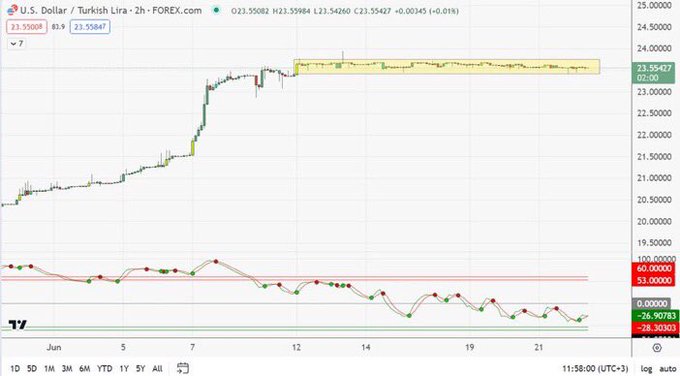 #USDTRY 12 Hazirandan beri sarı bandın içinde,rasyonel