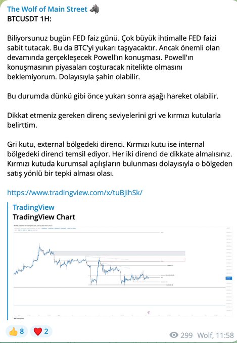 $BTC için FED günü bakış açımı TG'de paylaştım. Göz