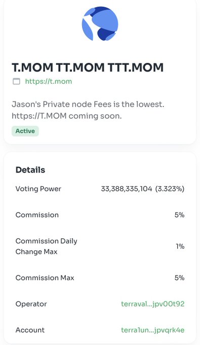 BREAKING: A new $LUNC validator named https://t.co/XscPTpagc6