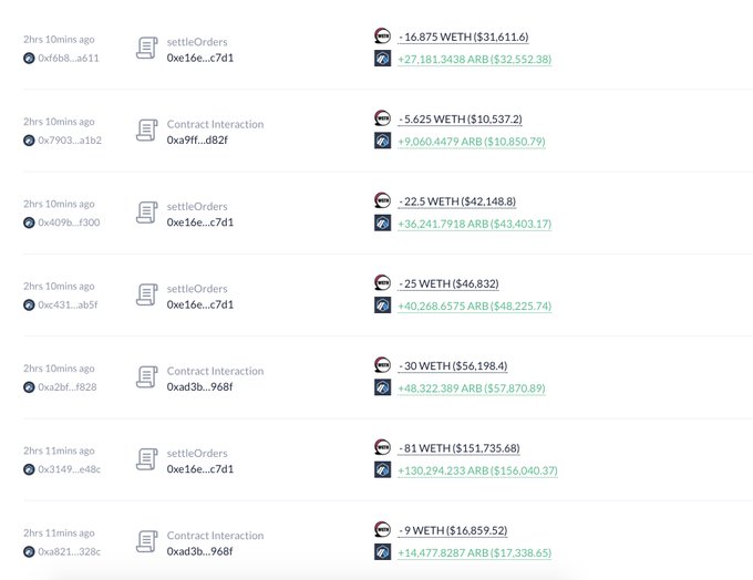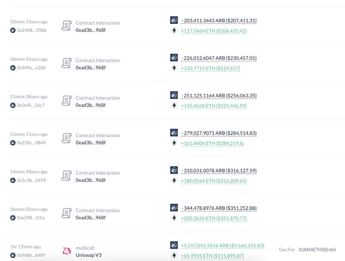 Whales are buying $ARB! Whale"0xb28f" spent 200 $ETH