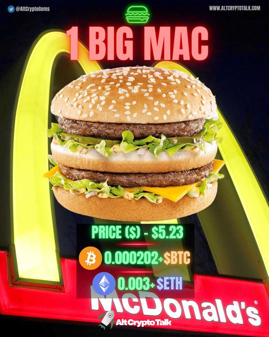 1 Big Mac can either be: $5.23 0.000202+ $BTC 0.003+
