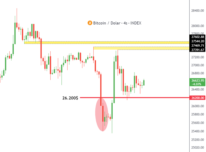 #BTC #Bitcoin 26.200$'ın altında günlük kapanış yaptıktan