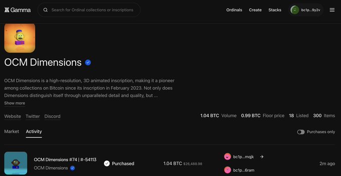 The First Sale of #OCMDimensions 🟧🔥 1.04 BTC ($26