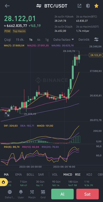 #Bitcoin tekrar 28.000 $. Devamı gelsin. Yeşil mumları