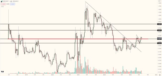 #XRP XRPにとって赤いラインは非常に 重要なエリアと私は思っています。 マーケット全体が下がりましたが 一度上抜けし、それを維持していることは 強く注目するべきだと思います もちろんBTCの下落 FUDによって割れることもありえます