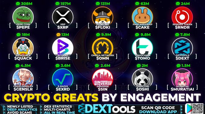 Popular choice #crypto ranked simply by their daily