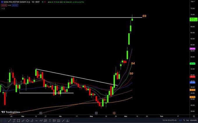 #SASA 50 liralardayken 69 lira hedefi göstermiştik