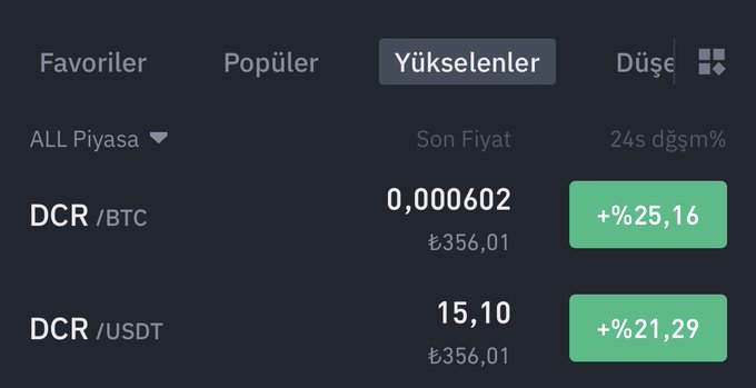 Uslanmaz DCR bu piyasa ortamında bile BTC'ye baş kaldırıyor