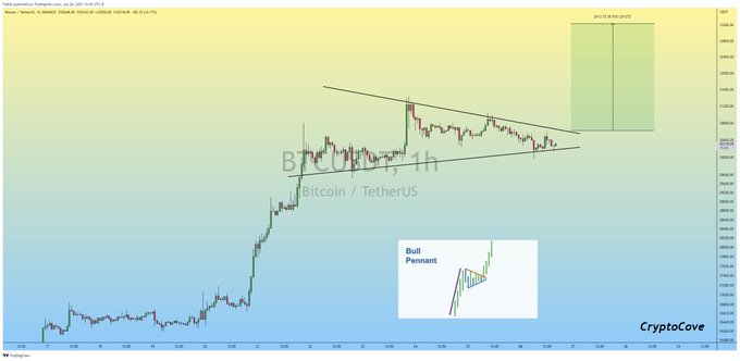 $BTC Bullish Pennant Formation on the Hourly timeframe