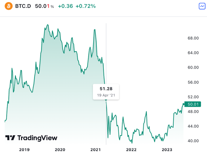 BREAKING: $BTC MARKET DOMINANCE SURPASSES 50% FOR THE