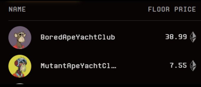 What is happening? BAYC floor at 38.99 ETH MAYC floor