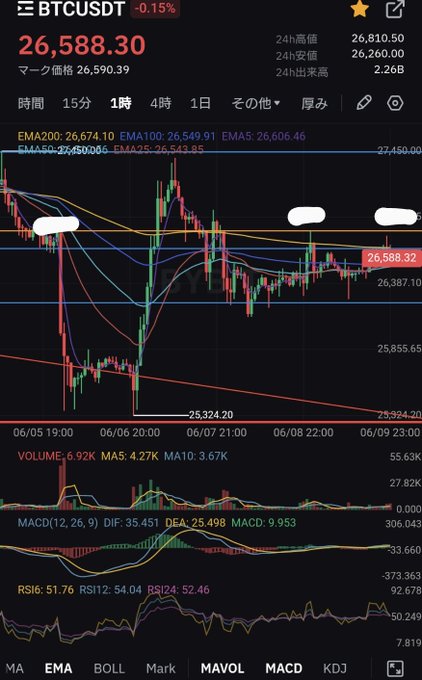 #BTC #Bitcoin 再度$26800手前下落📉 このレジスタンス【オレンジライン】は前回