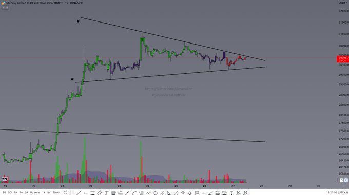 BTC 1 SAATLİK KISA VADELİ GRAFİK DİRENÇ 30.500 DESTEK