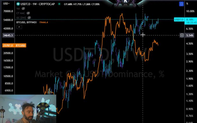 Looking at USDT.d vs $BTC price 🧐: Inverse correlation