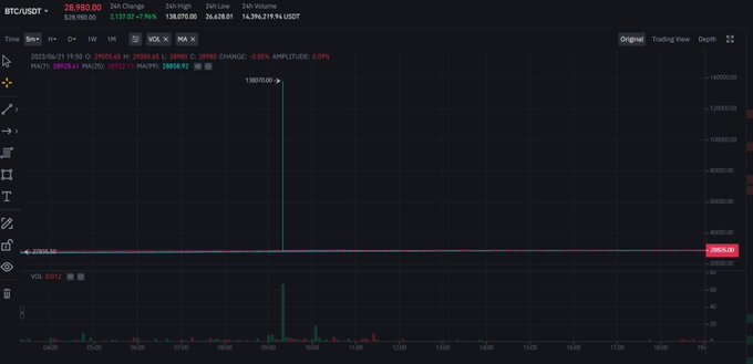 The BTC/USDT trading pair BTC price on BinanceUS briefly