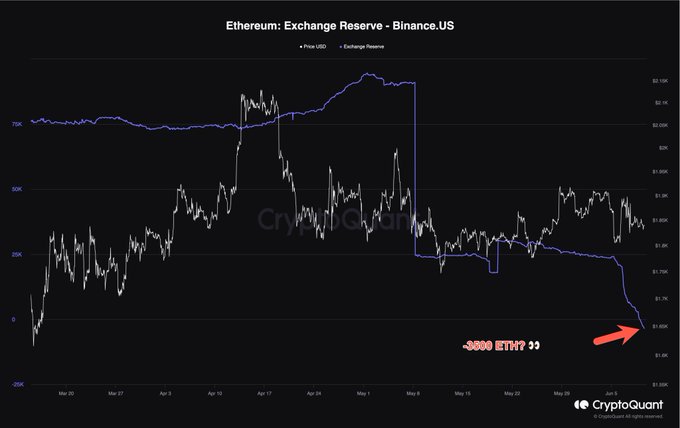 CryptoQuant cho thấy số lượng ETH trên BinanceUS là