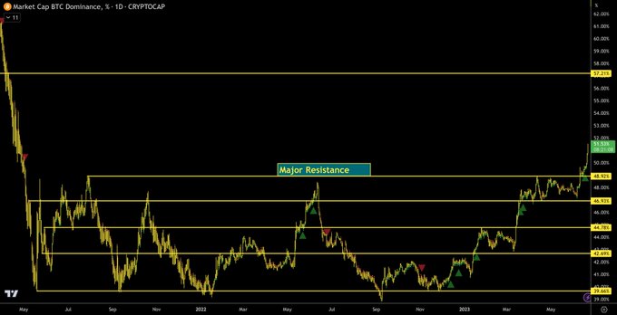 $BTC.D Bitcoin dominance is at 51%, overcoming major