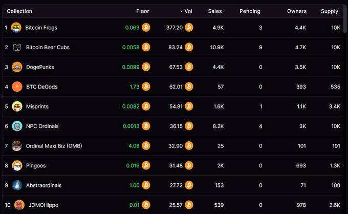 30-Day Stats on Ordinals Projects: 9 over 1 BTC Floor 4