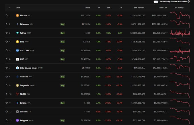 Here are the current prices for top coins. BTC: $25