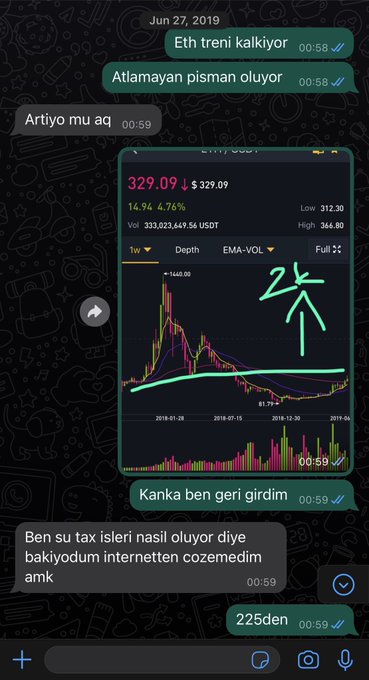 Haziran 2019, $225’den tekrar ETH almışım. Bugünlere