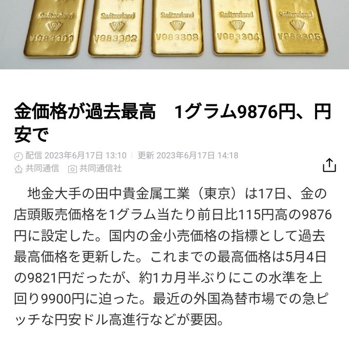 🪙金貨 「金貨、買っとく?」とお伝えした時はグラム約8800円の時 ⬇ 2、3か月した今、グラム約9800円へ。 ✔金は中長期的に右肩上がり。世界的にBTCは金の代わりにはならないと去年に分かったのも追い風👍 また、25年くらいから利下げ局面になると上昇圧力