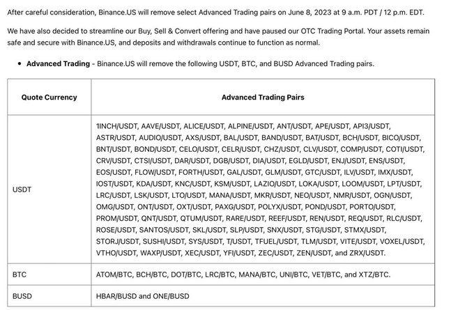So #BinanceUS is removing many $USDT $BTC + $BUSD advanced
