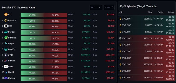 #Bitcoin Long ve Short Oranları BTC Tarafında Ne Kadar