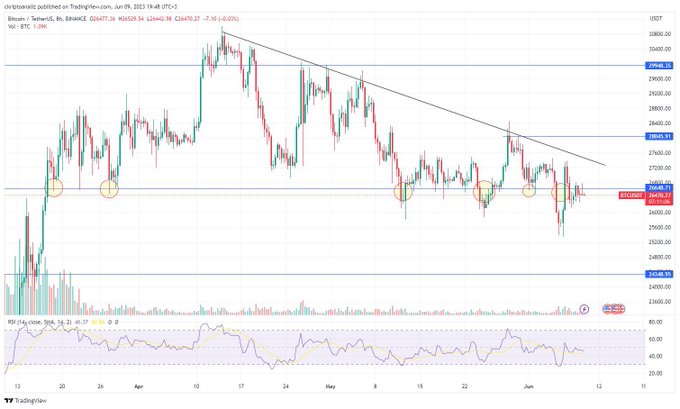 Grafikte de belli olduğu gibi 26.600$ noktası bitcoin