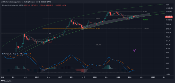 Currently, a stand-off between the #btc monthly MACD