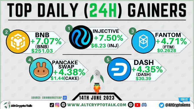 Top Daily Crypto Gainers | 14/06/23 1- #Injective
