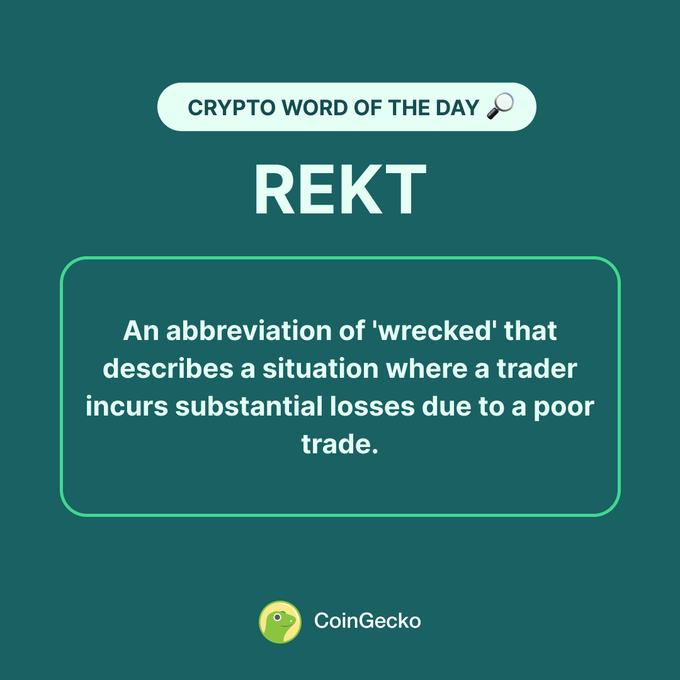 #Crypto Word Of The Day: "REKT" Used in a sentence: