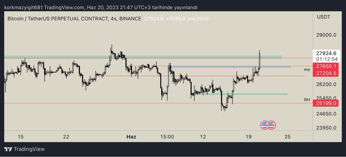 #Bitcoin 26.600$ olarak belirlediğimiz destek uzun